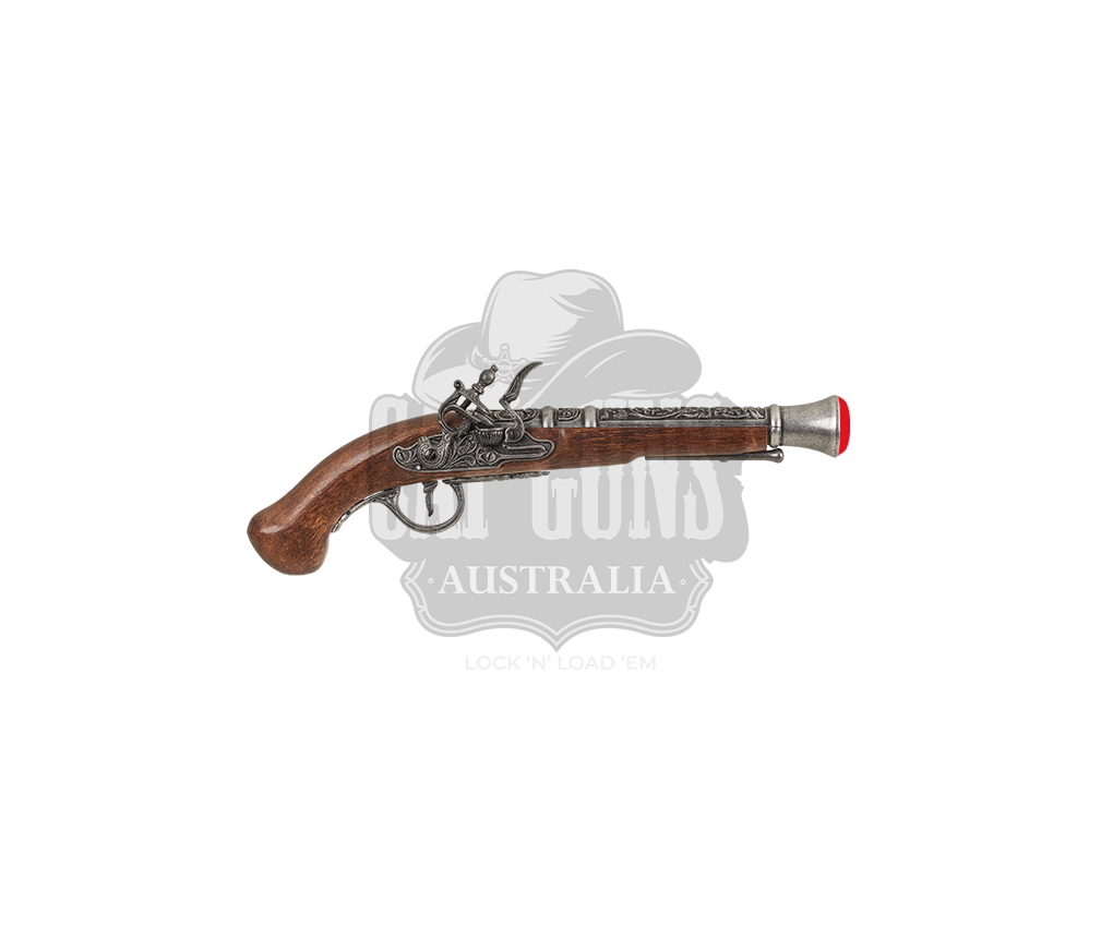 Set sail on a swashbuckling adventure with this stunning 18th-century flintlock pistol replica by Kolser—straight from the golden age of pirates and corsairs! This isn’t just any cap gun; it’s a piece steeped in pirate lore, ready to spark your imagination and collection alike.