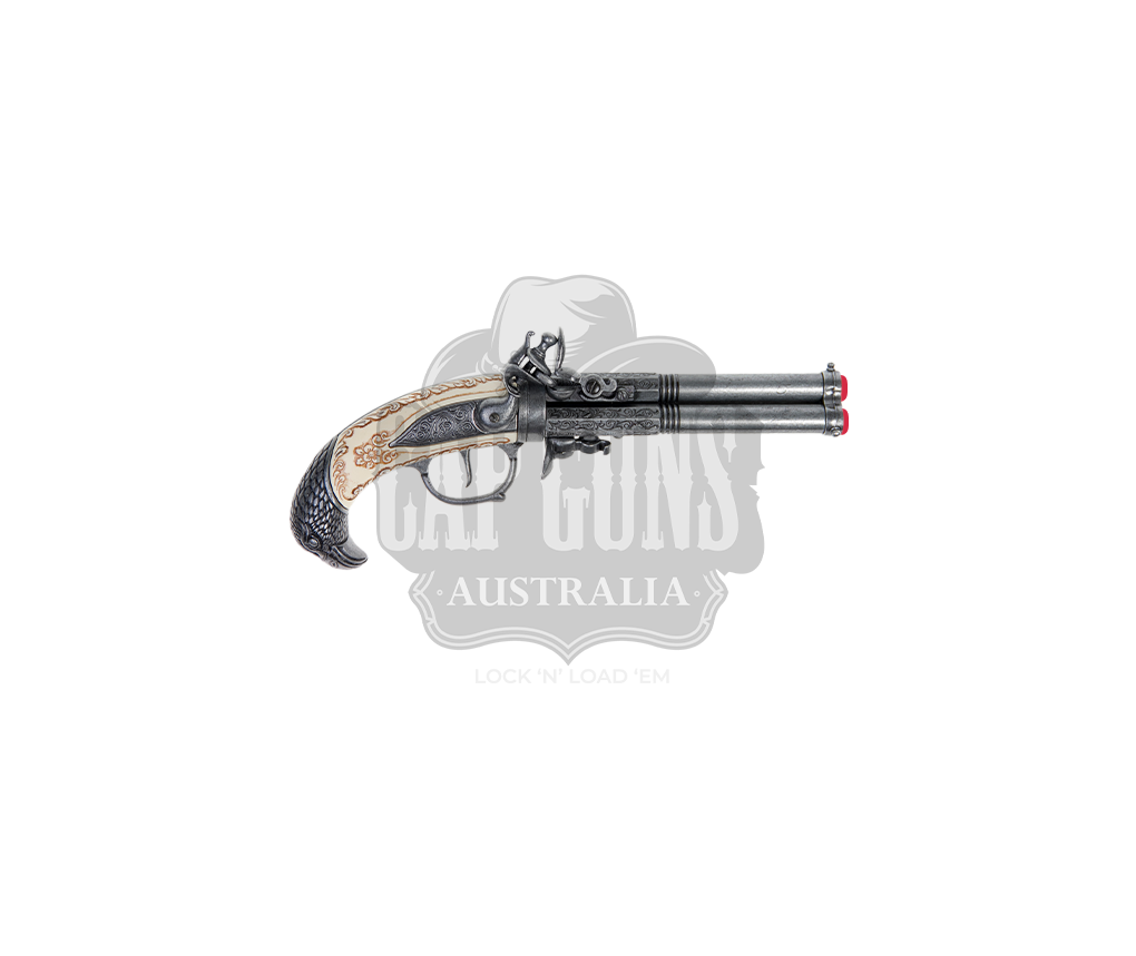 Step into history with this incredible 3-barrel Augsburg 1775 pistol replica, crafted with remarkable detail and an antiqued metallic finish that gives it that authentic vintage look. Made by Kolser, this beauty features a striking eagle’s head and neck grip—an iconic detail that sets it apart from the rest.